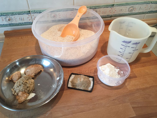 10g Brotgewürz (diese Zutaten können nach Belieben weg gelassen werden, dann muss aber etwas weniger Wasser genommen werden)