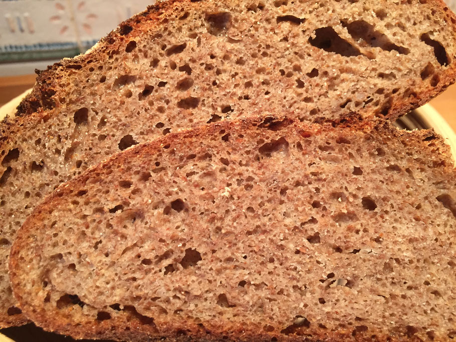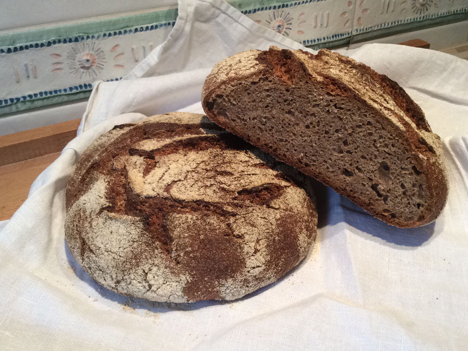 Hier habe ich Einkorn, Roggen und Dinkel verwandt. Eine Abwandlung war Biogranat Rotkorn, Lichtkornroggen und Emmer.