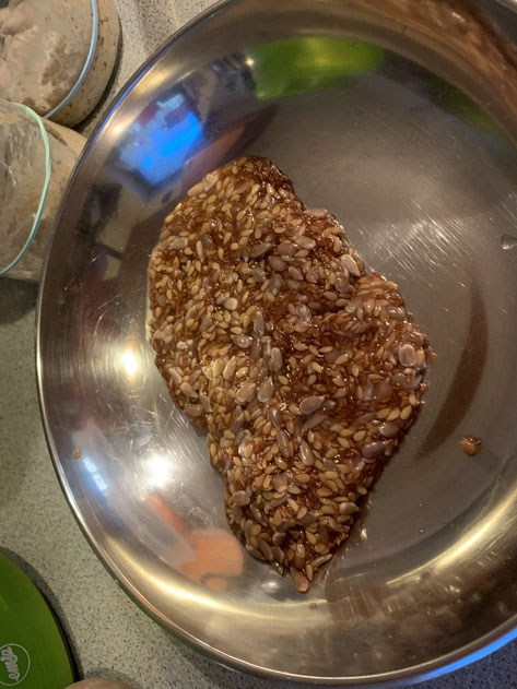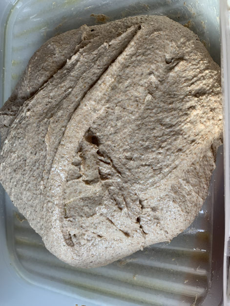 Nach 30/60/90 Minuten dehnen und falten und dann für 8h in den Kühlschrank stellen.