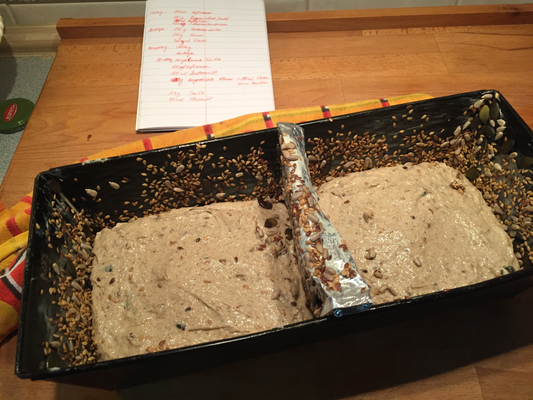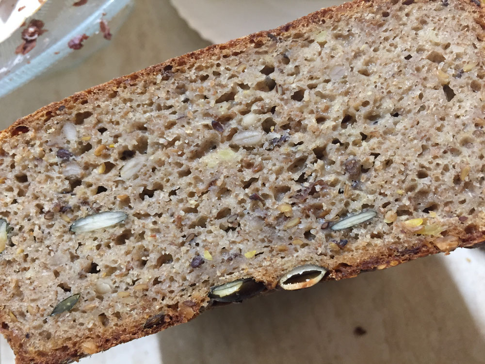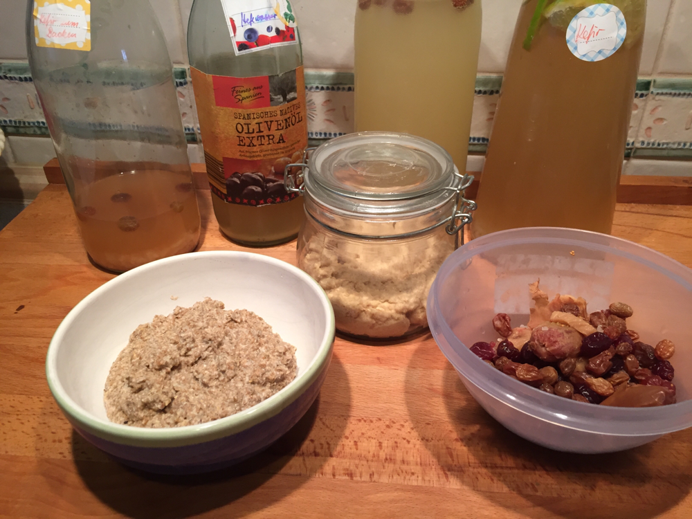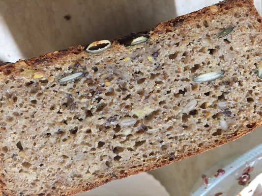 100g angeröstete Körner (Sonnenblumenkerne, Goldsesam, Leinsamen, Kürbiskerne)+