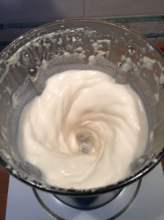 3. Jetzt gebe ich ca. 100ml des abgekochten und abgekühlten Wassers dazu und püriere weitere 5-10 Minuten.