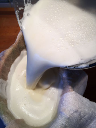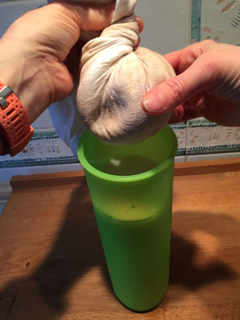5. Jetzt wird die Masse in das Leinentuch gegossen