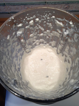 mit der Küchenmaschine durch gemixt und durch ein Leinentuch gepresst ergibt eine leckere Mandelmilch.