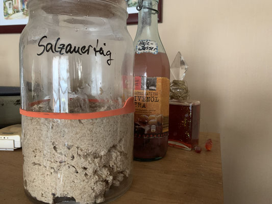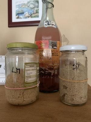 Sind die Vorteige fertig, kommen sie in den Kühlschrank. Jetzt können sie ca.1Woche verwendet werden. Dann sollten sie spätestens wieder