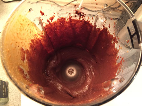 3. Nachdem sie leicht abgekühlt sind, sollen die Mandeln mit dem Rapsöl im Mixer püriert werden, bis eine cremige Masse entsteht.